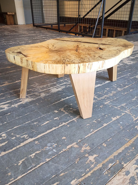 beautiful Spalted Maple top with tapered White Oak legs. 32" x 41"x 15-3/4" high